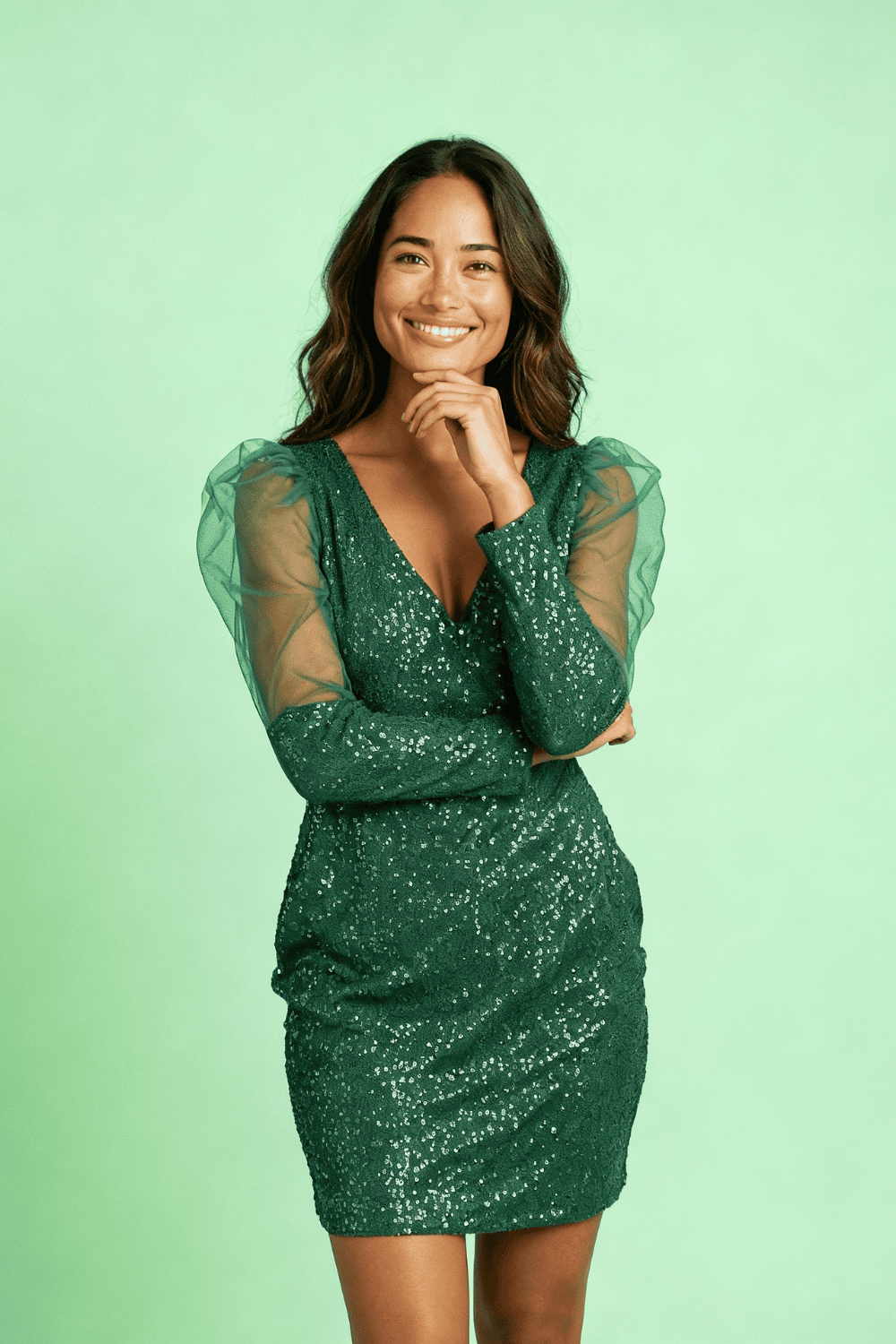 Make an unforgettable statement with Lelamer’s Emerald Green Slub Shimmer Dress — a refined blend of texture, sparkle, and modern femininity.