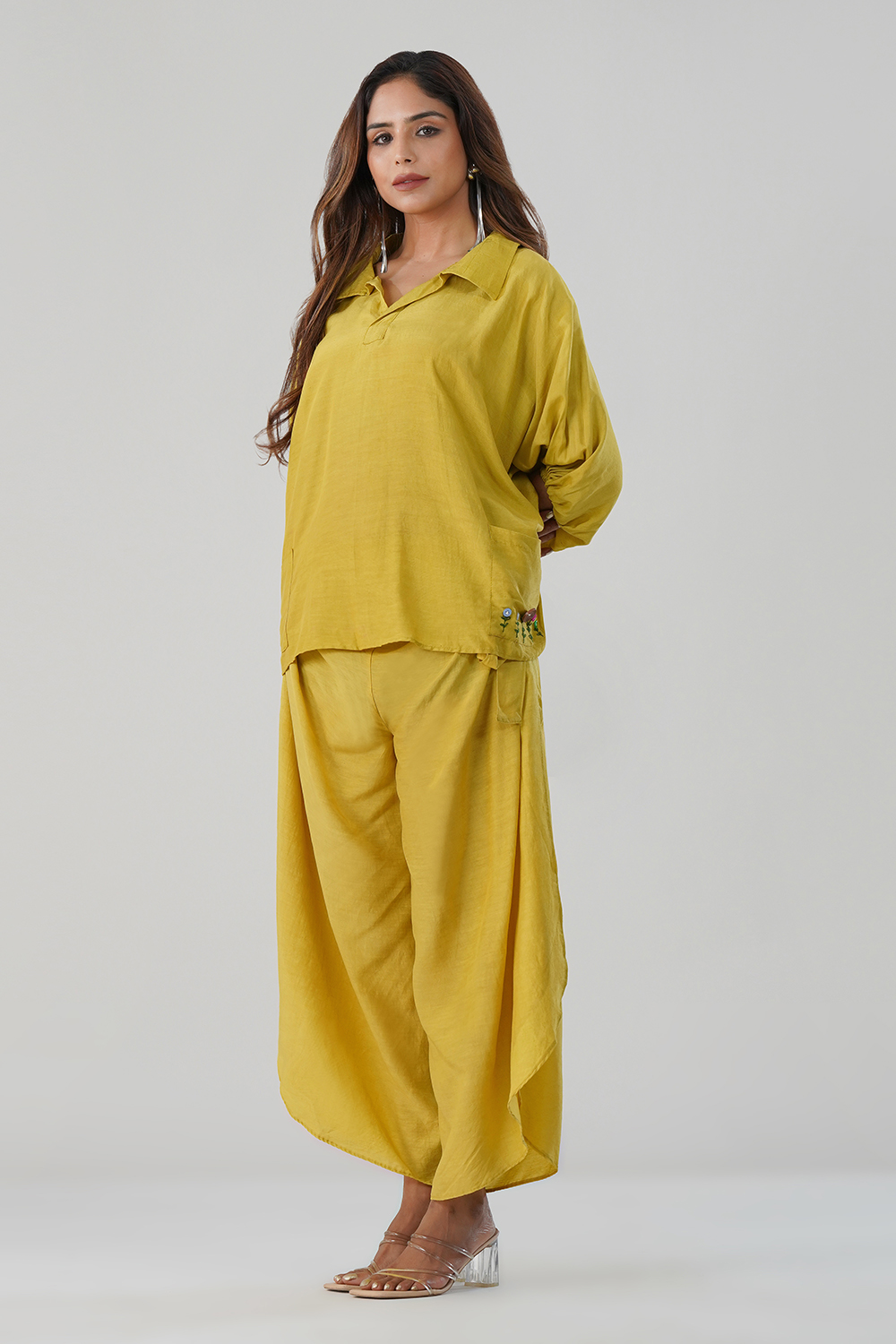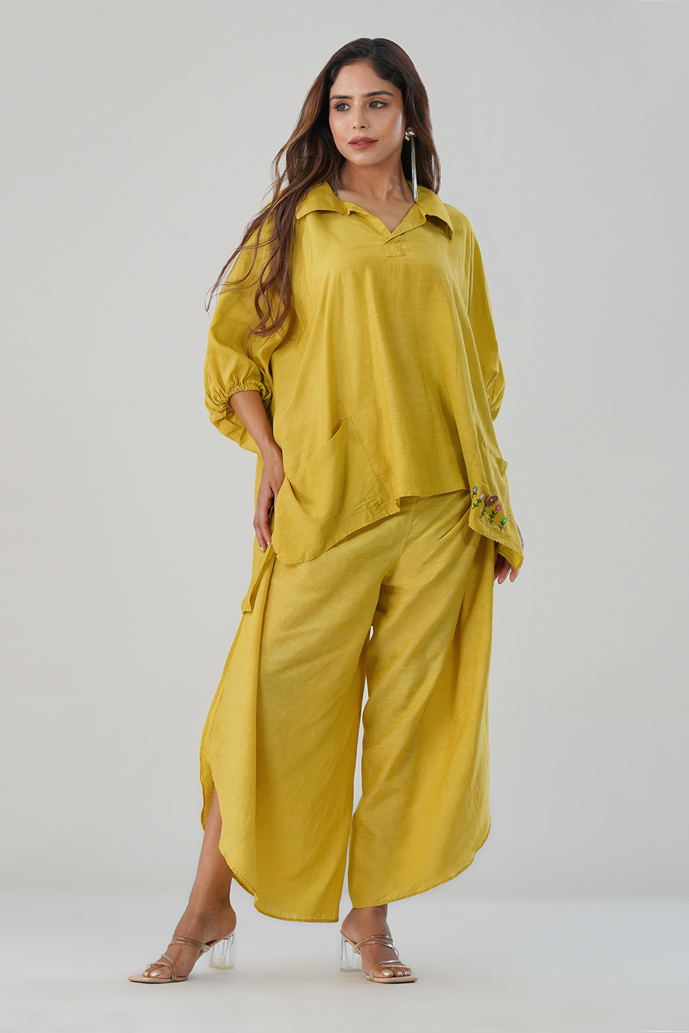 Slip into effortless style with Lelamer’s Mustard Yellow Cotton-Linen Co-ord Set — a blend of minimal design and everyday luxury. Crafted from a breathable cotton-linen blend, this set features: