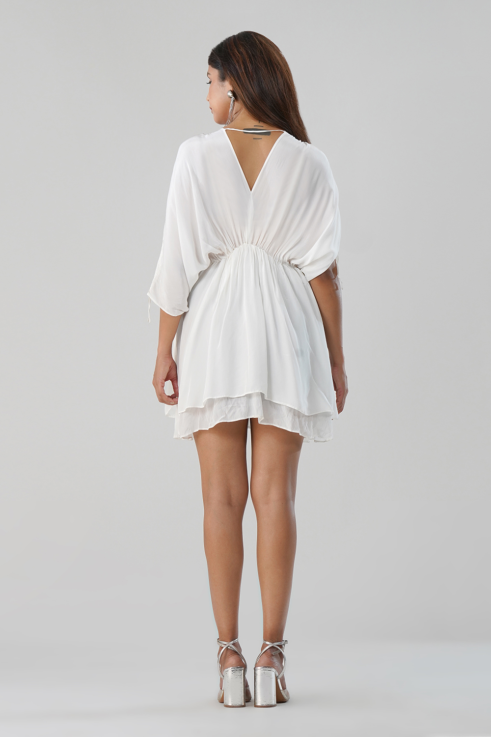 The off-white hue makes this dress perfect for evening soirées, brunches, intimate gatherings, or even as a contemporary festive piece.