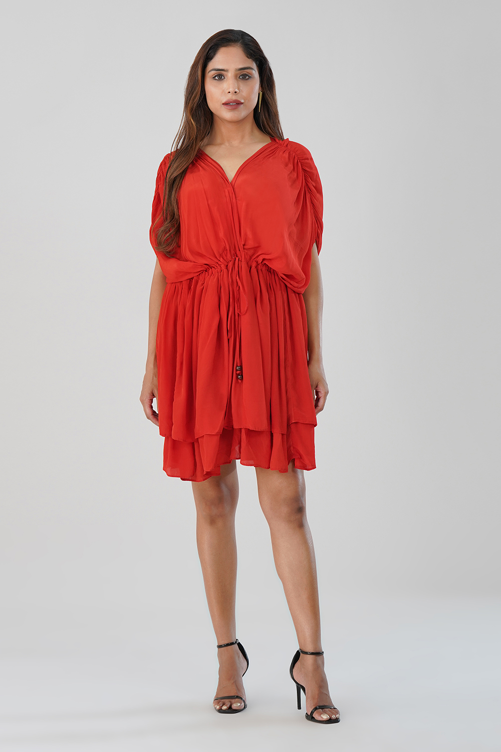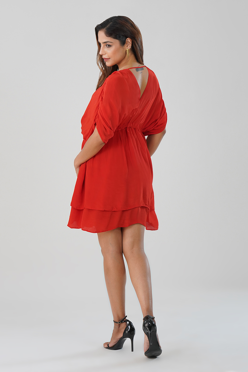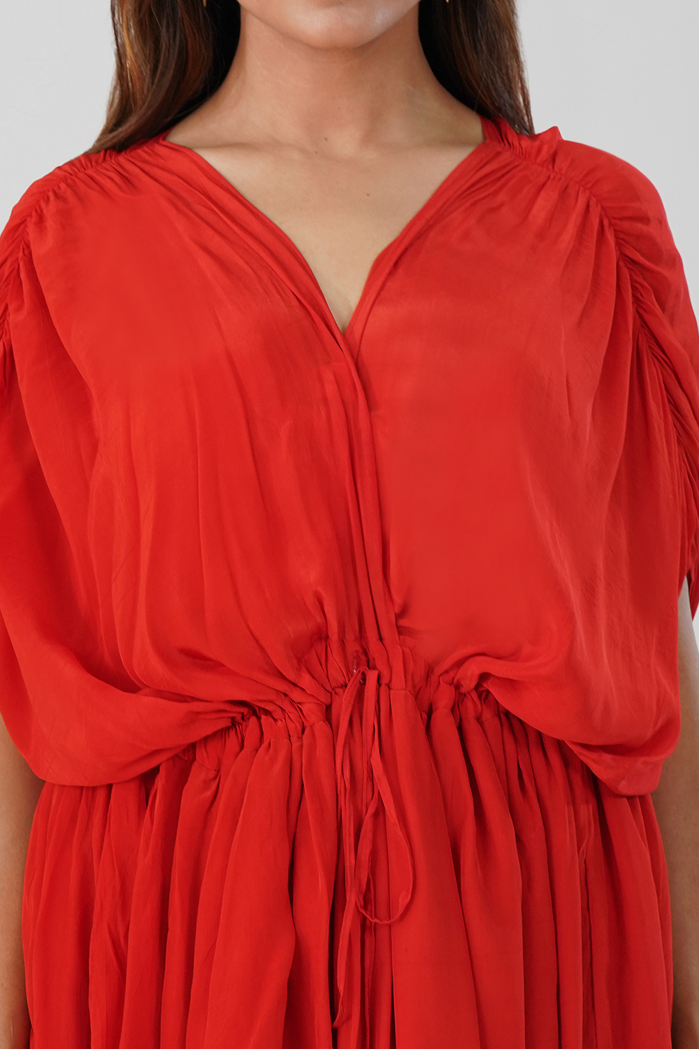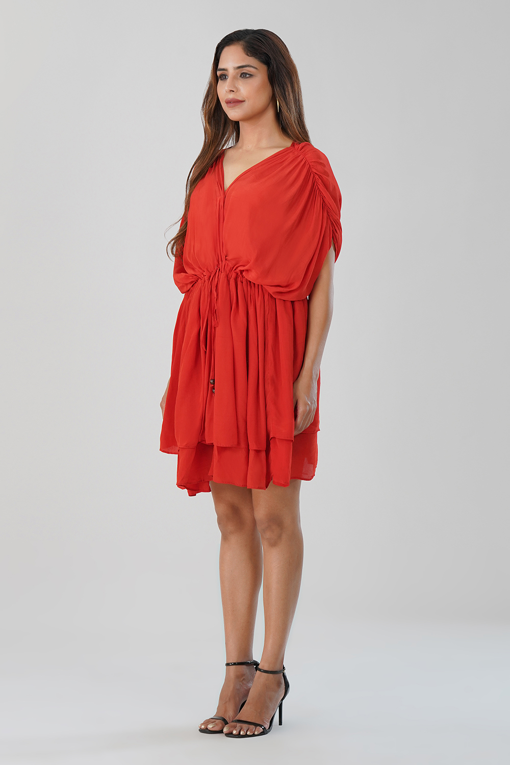 Perfect for evening parties, date nights, or festive gatherings, this red dress drapes beautifully and offers effortless day-to-night transition.